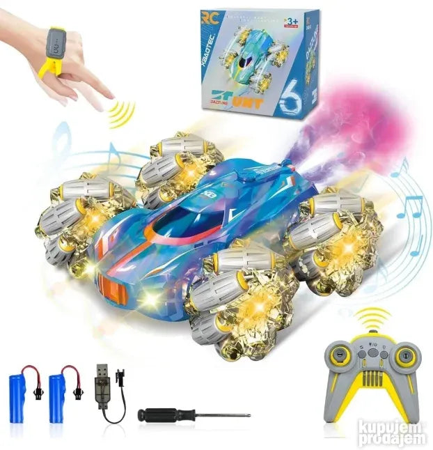 Dvostruki metod upravljanja: redizajnirani RC kaskaderski automobil ima dva kontrolna sistema - tradicionalni daljinski upravljač i inovativni gravitacioni sat. Jednostavni gestovi su dovoljni da kontrolišete automobil, bilo da trči po složenim putanjama ili izvodi teške vratolomije, dajući vam jedinstveno iskustvo vožnje. Ova veoma fleksibilna kontrola čini svaku vožnju iznenađujućom i izazovnom i pogodna je za korisnike svih uzrasta.